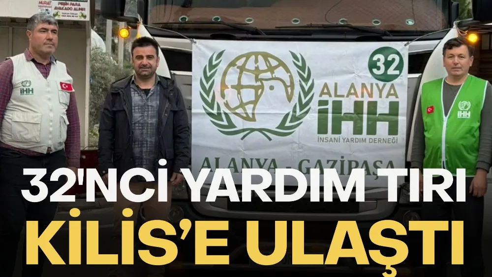 GAZİPAŞA’DA faaliyet gösteren Çınar Gazipaşa Eğitim Kültür ve Dayanışma Derneği, İHH Gazipaşa Temsilciliği ve İHH Alanya Şubesi iş birliğiyle yürütülen yardım kampanyası kapsamında hazırlanan 32’nci yardım TIR’ı, deprem bölgesi Kilis’e ulaştırıldı.