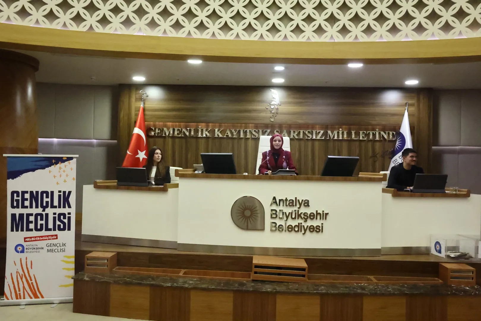 ANTALYA - Gençlik Meclisi 2025-2026 döneminin ilk toplantısına Antalya Büyükşehir Belediyesi Meclis Salonu’nda gerçekleştirdi. Toplantıya Antalya Büyükşehir Belediyesi Meclis Üyesi Nilüfer Deveci, Av. Müge Gezginci Uysal ve Başkan Danışmanı Mehmet Karavural da katıldı. Saygı Duruşu ve İstiklal Marşı’nın okunmasıyla açılan meclis oturumuna lise öğrencisiyken girdiği mecliste şimdi üniversite öğrencisi olan Erol Tenil başkanlık etti.