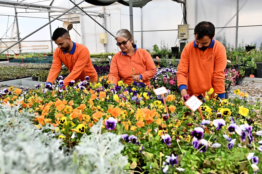 Seralarda hummalı bir çalışma yürüten ekipler, çiçeklerin tohumdan yetiştirilmesinden bakımına, budamadan saksılamaya kadar tüm süreçleri titizlikle yürütüyor.