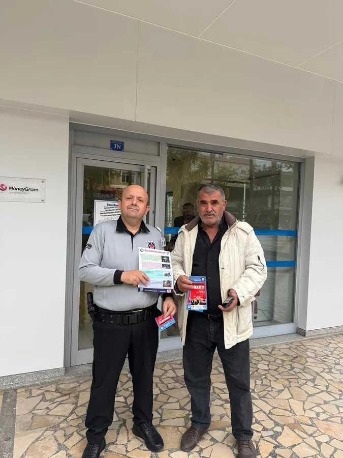 Çalışmalar kapsamında banka ve PTT şubelerinde görev yapan güvenlik personeli de bilgilendirildi. Ekipler, özellikle yaşlı, panik halinde olan veya yüksek miktarda para çekmek ya da göndermek isteyen vatandaşlara karşı dikkatli olunmasını istedi. Bu tür durumlarda vakit kaybetmeden emniyet birimlerine haber verilmesi gerektiği vurgulandı. Yapılan iş birliğiyle dolandırıcılık olaylarının erken aşamada önlenmesinin amaçlandığı belirtildi.