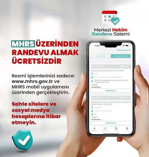 Kayhan, tüm işlemlerin yalnızca resmi platformlar üzerinden yapılması gerektiğini vurgulayarak, “MHRS işlemlerinizi yalnızca resmi MHRS uygulaması veya mhrs.gov.tr üzerinden gerçekleştirin. Şüpheli bir durumla karşılaşırsanız en yakın emniyet birimine başvurun” dedi.> Vildan RENDE