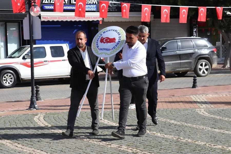 19 Ekim Muhtarlar Günü, Cumhuriyet Meydanı’nda düzenlenen törenle kutlandı. Programa Gazipaşa Kaymakamı Selami Korkutata, Belediye Başkan Yardımcıları Serkan Özkurt, Necdet Ali Şirin ve Selçuk Özdemir, Gazipaşa Kaymakamlığı Sosyal Yardımlaşma ve Dayanışma Vakfı Müdürü Ali Rıza Büyükakça, İlçe Sağlık Müdürü Dr. Eşşe Çelik, Ziraat Odası Başkanı Yusuf Çelik, İYİ Parti İlçe Başkanı Mehmet Ali Çomruk, Gazipaşa Mahalle Muhtarları Derneği Başkanı Yahya Küçükballı ve mahalle muhtarları katıldı. Gazipaşa Mahalle Muhtarları Derneği’nin Atatürk Anıtı’na çelenk sunmasıyla başlayan tören, Saygı Duruşu ve İstiklal Marşı’nın okunmasıyla devam etti.